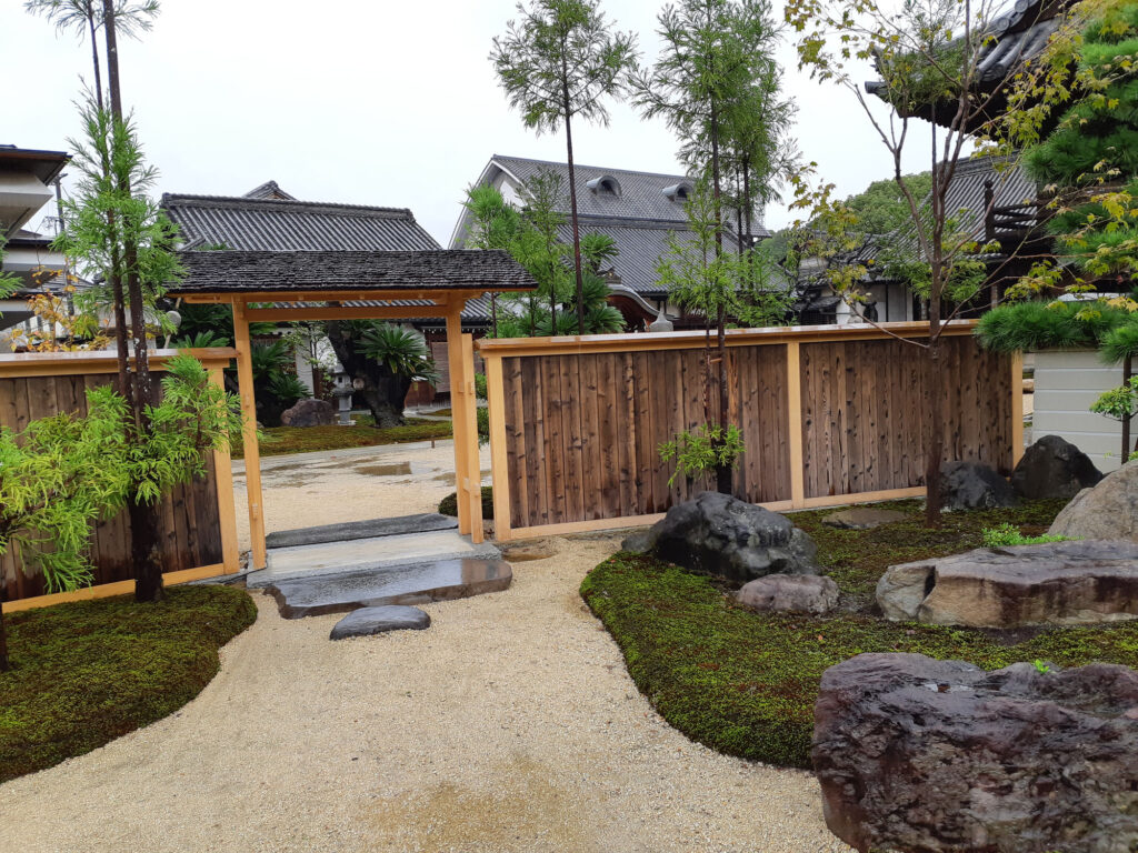 京都の作庭家・北山安夫さんにより作庭された庭園内に建てられた数寄屋門。