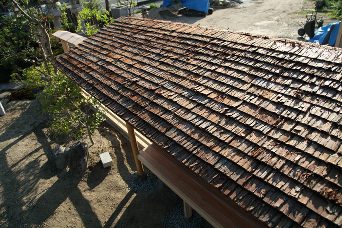 杉皮葺屋根は、日本建築特有の繊細で優美な線が表現できます。